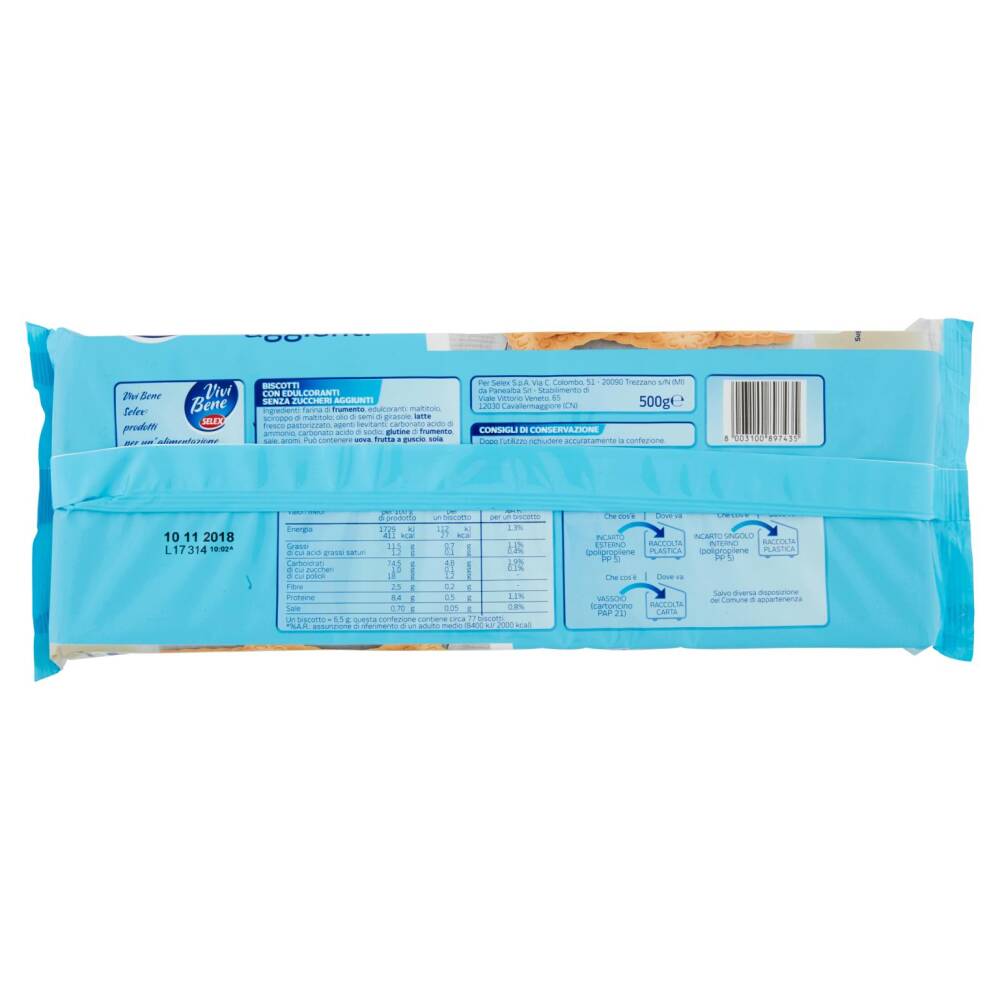 | Un biscotto = 6,5 g; questa confezione contiene circa 77 biscotti | |||