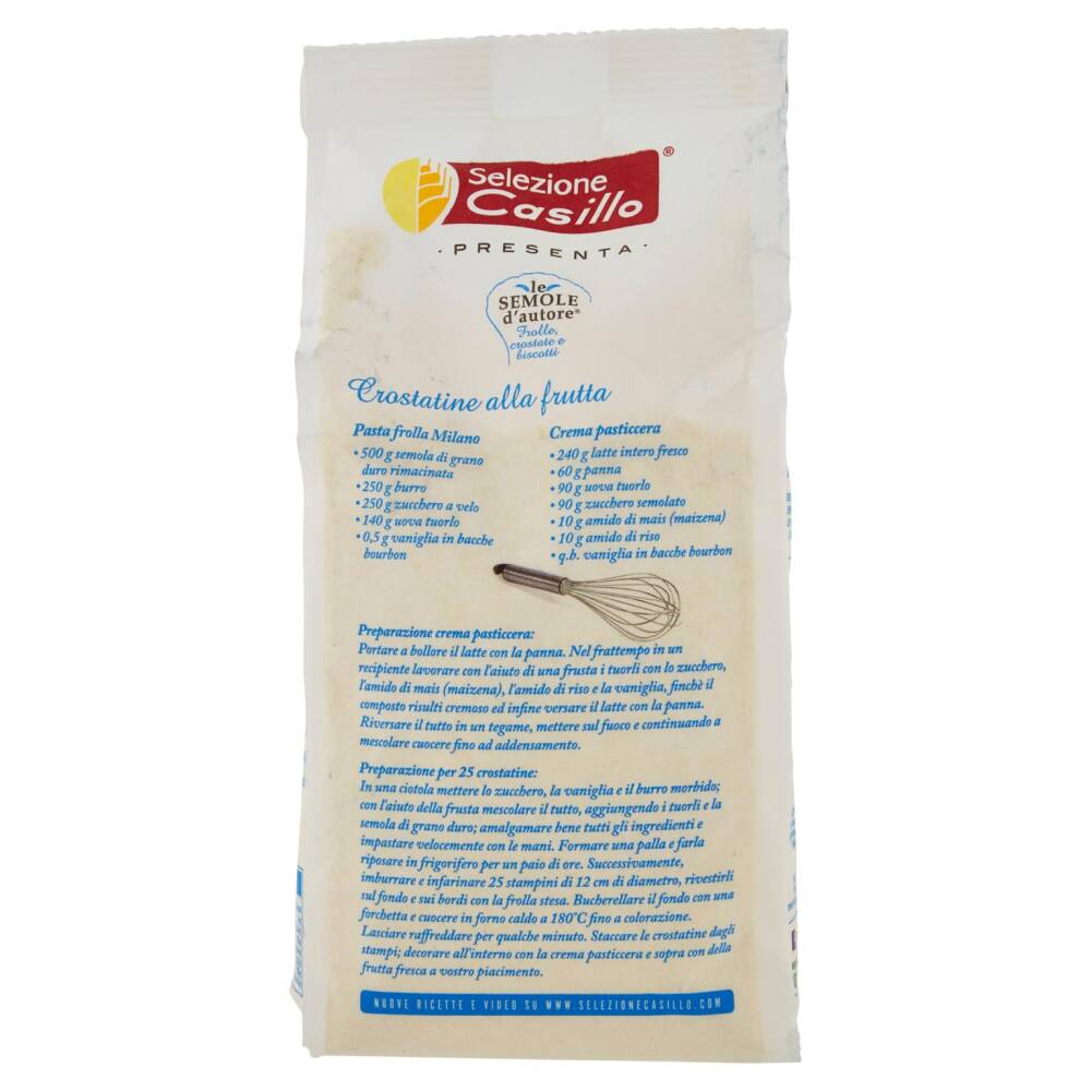 La finezza della semola è la caratteristica fondamentale per ottenere ottimi dolci; la semola fine è ottenuta dalla macinazione del grano duro, una tipologia di frumento dalla struttura proteica compatta e nobile che conferisce un aroma irresistibile ed ottima friabilità. Le componenti aromatiche sprigionano un intenso profumo donando ai dolci l'inebriante fragranza del grano appena raccolto.
