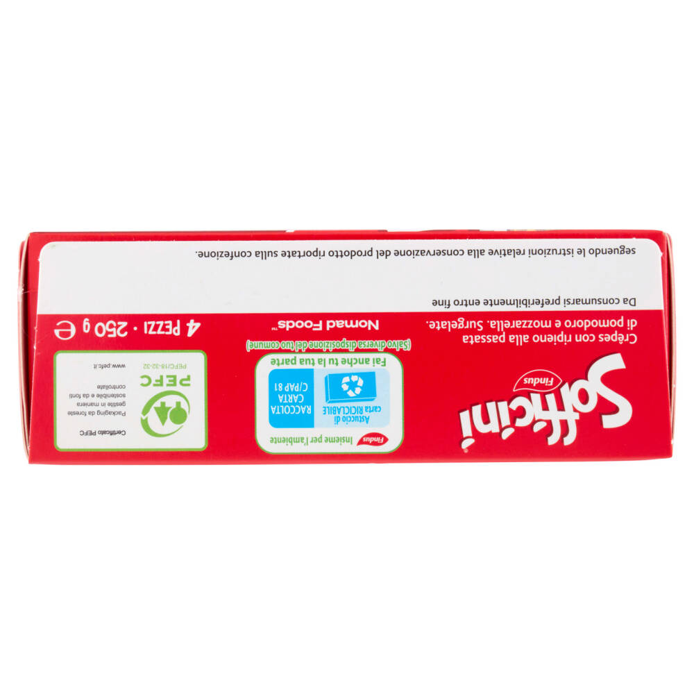 Ripieno 28,4% (passata di pomodoro 94%, amido di frumento, olio di colza, latte scremato in polvere, formaggio (latte, sale, fermenti lattici, caglio), basilico 1,6%, cipolla, sale, aglio, origano, pepe nero)