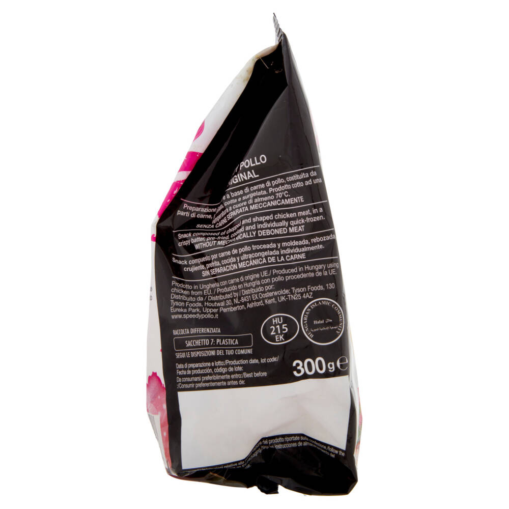 Carne di pollo 43% (di cui 77% petto di pollo) Acqua Olio di girasole Farina di frumento Farina (farina di frumento, carbonato di calcio, ferro, niacina, tiamina) Fibra di frumento Sale Amido di frumento Amido modificato di mais Agenti lievitanti (difosfato disodico, bicarbonato di sodio, carbonati di ammonio) Aromi contenenti senape Sciroppo di glucosio Spezie contenenti senape Farina di mais Cipolla in polvere Piante aromatiche Aglio in polvere Estratto di lievito Destrosio Latte scremato in polvere Sale iposodico (cloruro di sodio, cloruro di potassio) Estratto di rosmarino Nonostante gli accurati controlli, consigliamo di prestare attenzione alla possibile presenza di piccoli frammenti ossei