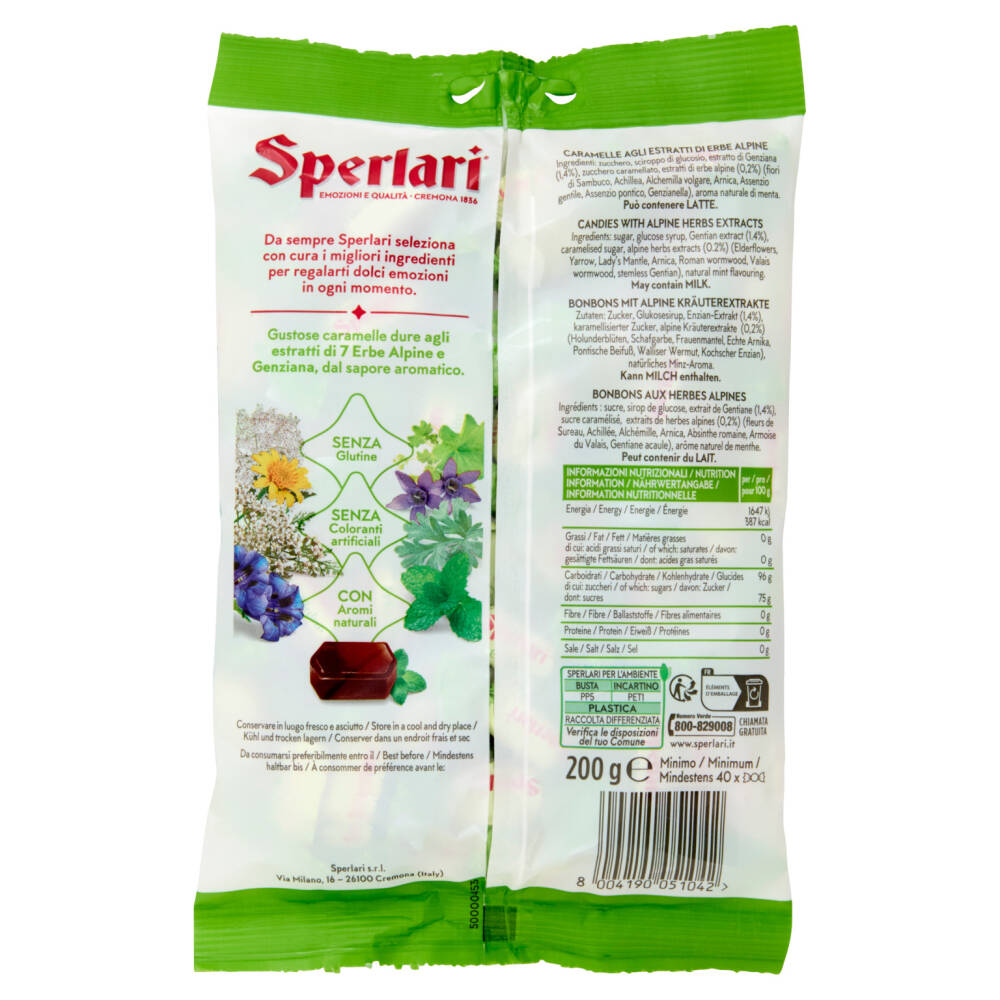 Zucchero Sciroppo di glucosio Estratto di genziana (1,4%) Zucchero caramellato Estratti di erbe alpine (0,2%) (fiori di sambuco, achillea, alchemilla volgare, arnica, assenzio gentile, assenzio pontico, genzianella) Aroma naturale di menta Può contenere LATTE