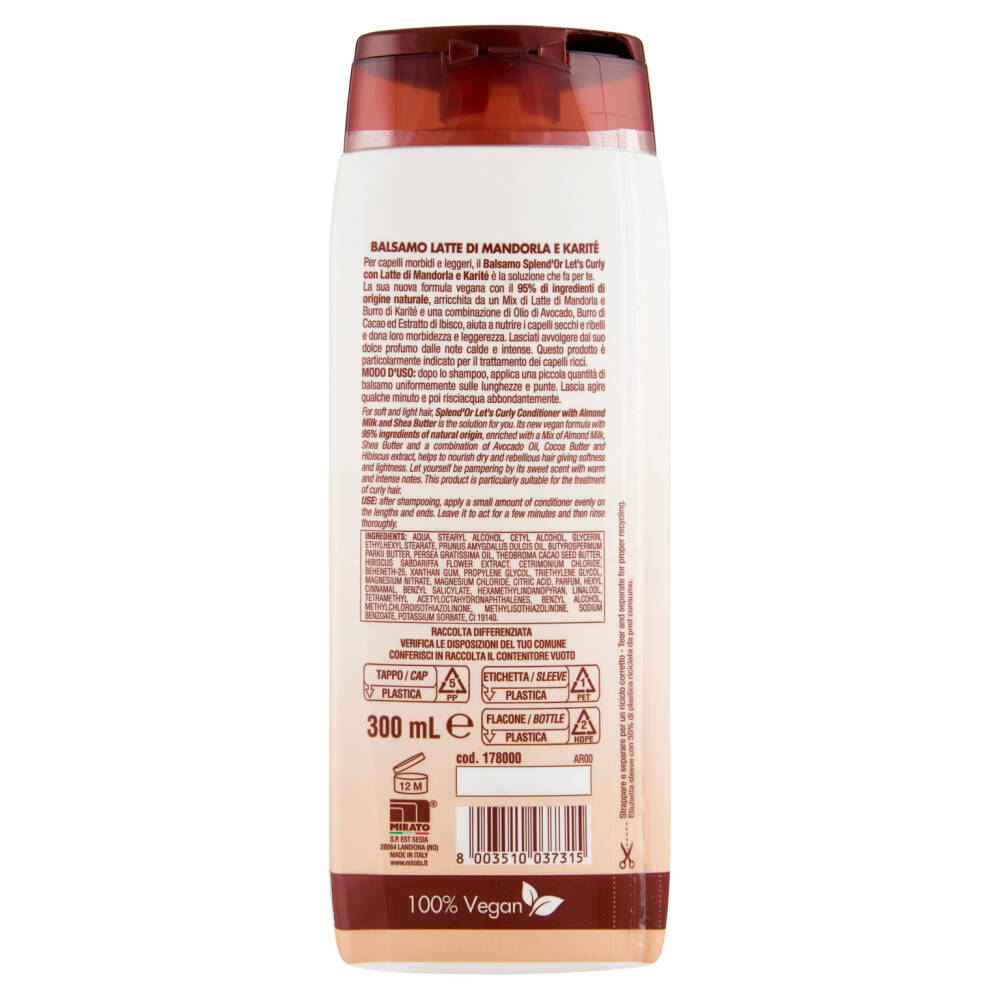Per capelli morbidi e leggeri, il Balsamo Splend'Or Let's Curly con Latte di Mandorla e Karité è la soluzione che fa per te.
