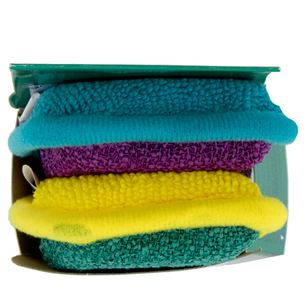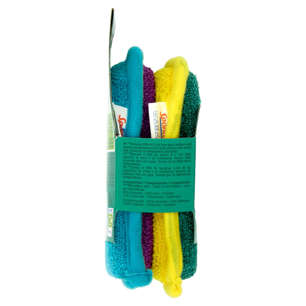 1 anno con lavaggio una volta a settimana* 99% di batteri & virus** Non graffia *È lavabile in lavatrice o in lavastoviglie fino a 52 volte (1 anno se la si lava una volta a settimana)! La parte in microfibra è composta al 100% da fibre riciclate e parte abrasiva è composta al 65% da fibre riciclate **Rimuove il 99% dei batteri di E. Coli dalle superfici in vetro e di Coronavirus Umano dalle piastrelle solo con acqua. Testato da un laboratorio indipendente