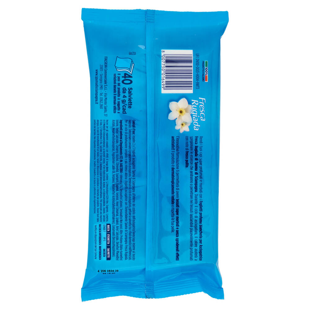 Rendi i tuoi capi super profumati e morbidi con i Foglietti profuma biancheria per Asciugatrice Fresca Rugiada di Spuma di Sciampagna. Durante il ciclo di asciugatura, il calore aiuterà a sprigionare le essenze che andranno a penetrare nei tessuti lasciandoli piacevolmente profumati con note di fresco pulito.