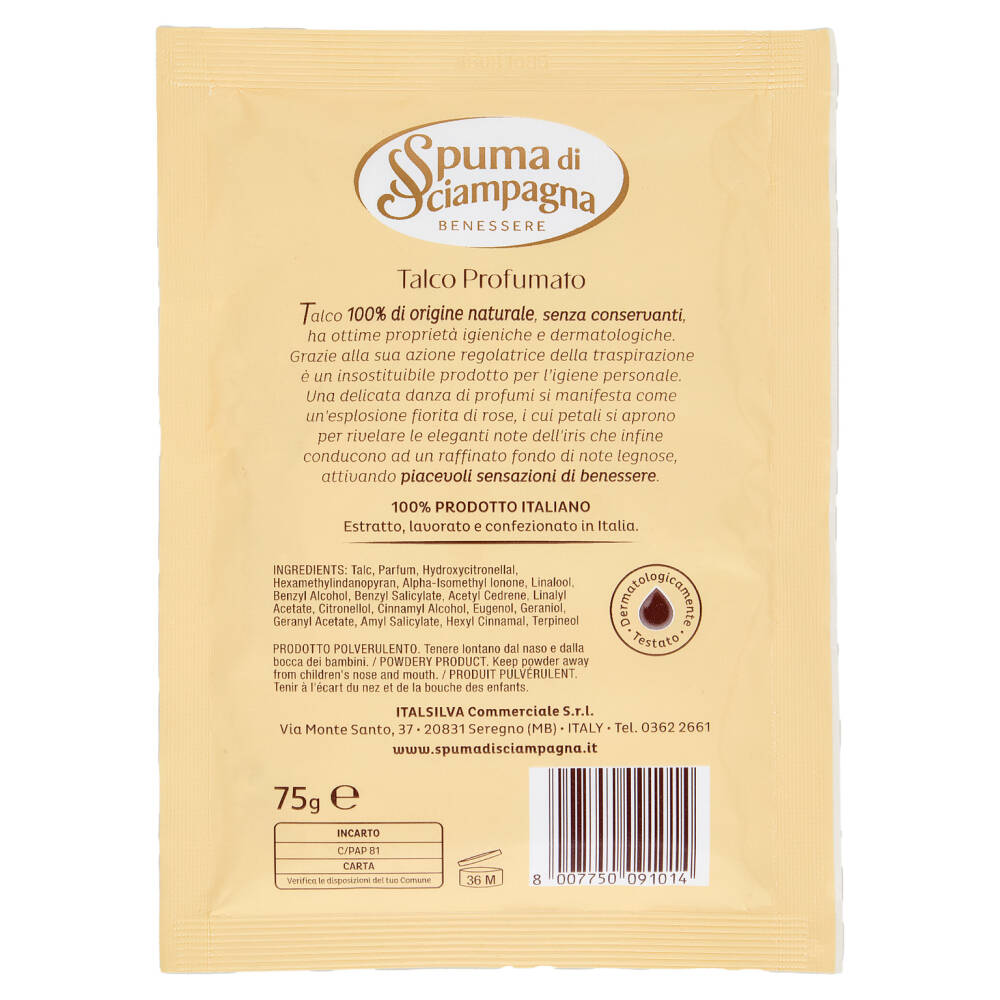 Talco 100% di origine naturale, senza conservanti, ha ottime proprietà igieniche e dermatologiche. Grazie alla sua azione regolatrice della traspirazione è un insostituibile prodotto per l'igiene personale. Una delicata danza di profumi si manifesta come un'esplosione fiorita di rose, i cui petali si aprono per rivelare le eleganti note dell'iris che infine conducono ad un raffinato fondo di note legnose, attivando piacevoli sensazioni di benessere.