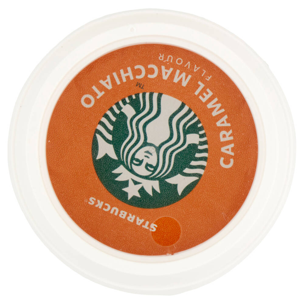 Bevanda con latte e caffè Arabica Starbucks al gusto di caramello, da latte parzialmente scremato con 1,8% di materia grassa, UHT. Elevato tenore di caffeina (47mg/100ml)