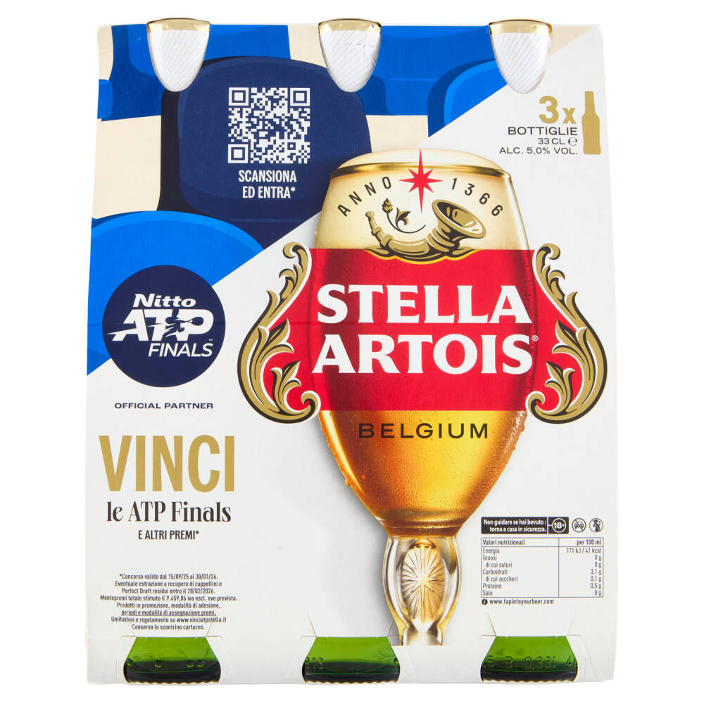 STELLA ARTOIS Birra lager belga bottiglia Edizione ATP 3x33cl
