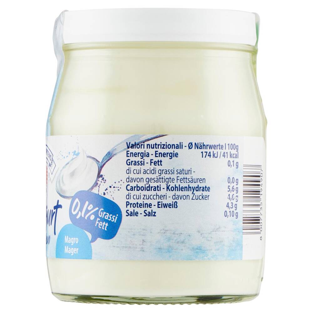 Yogurt magro (latte* scremato pastorizzato, fermenti lattici vivi: Streptococcus thermophilus e Lactobacillus bulgaricus)