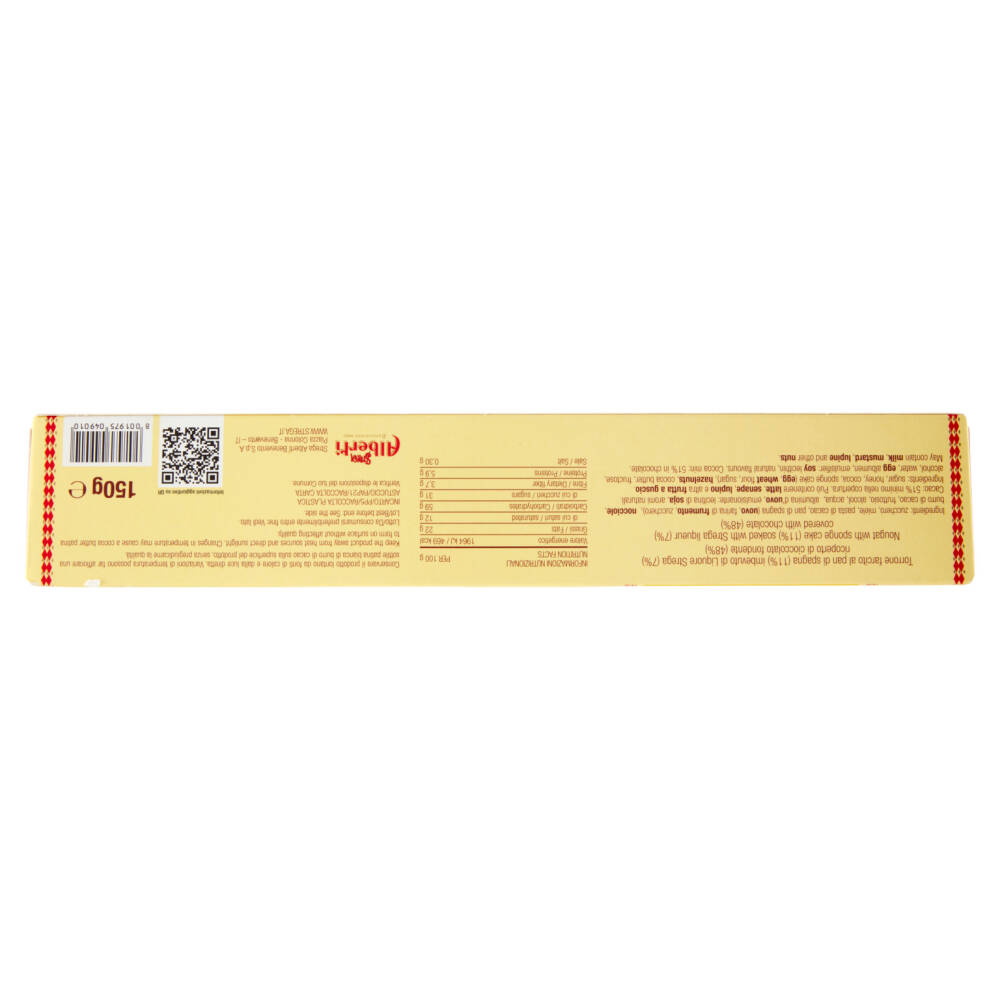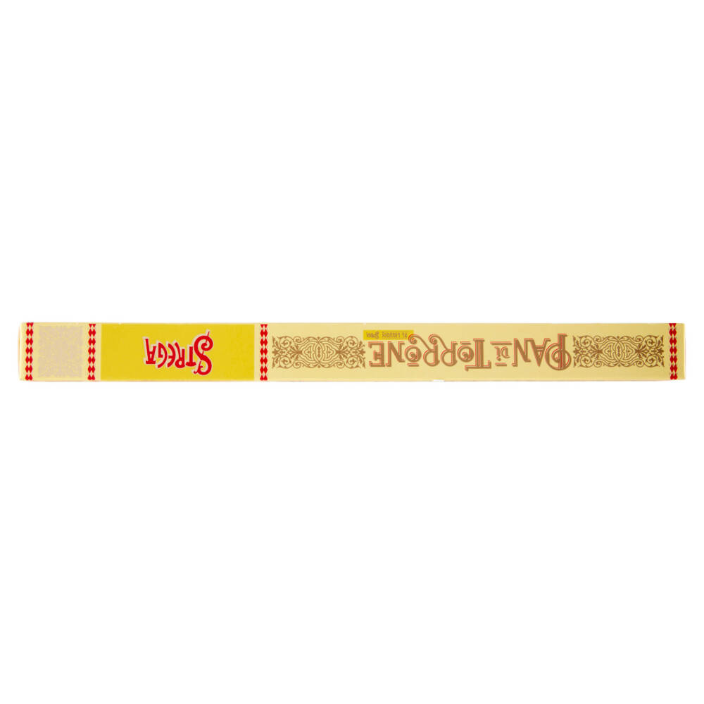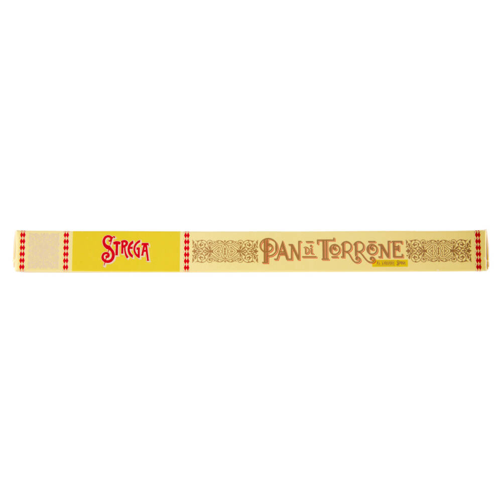 Torrone farcito al pan di spagna (11%) imbevuto di Liquore Strega (7%) ricoperto di cioccolato fondente (48%)