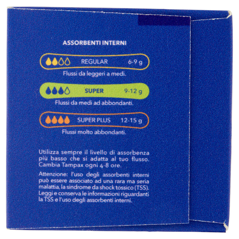Utilizza sempre il livello di assorbenza più basso che si adatta al tuo flusso. Cambia Tampax ogni 4-8 ore.