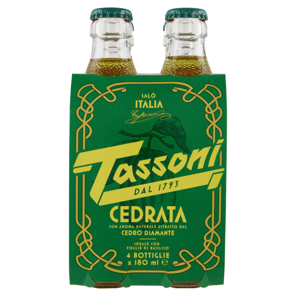 la cedrata già pronta nella sua dose ideale, nasce all'inizio degli anni '50. Analcolica e frizzante, la bibita porta con sé i profumi del cedro dal quale Tassoni, come da secolare tradizione, estrae gli olii essenziali per ottenere l'aroma naturale che caratterizza la bibita.