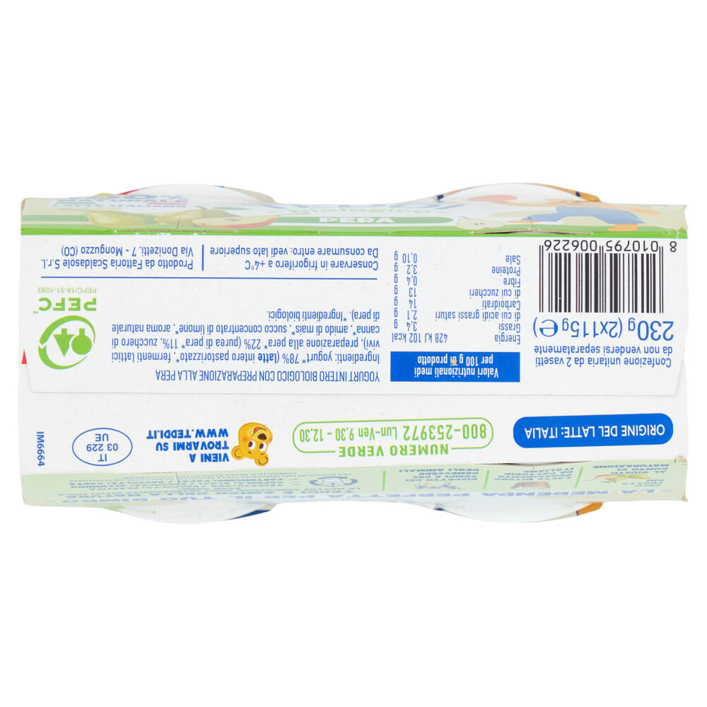 Yogurt* 78% (latte intero pastorizzato*, fermenti lattici vivi) Preparazione alla pera* 22% (purea di pera* 11%, zucchero di canna*, amido di mais*, succo concentrato di limone*, aroma naturale di pera*) *Ingredienti biologici
