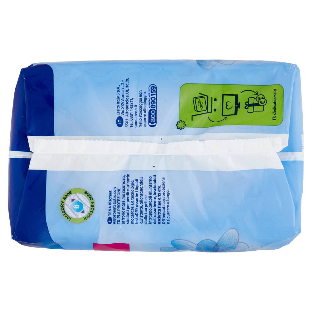 Tena Discreet ti offre Tripla Protezione da perdite, odori e sensazione di bagnato sulla pelle.
