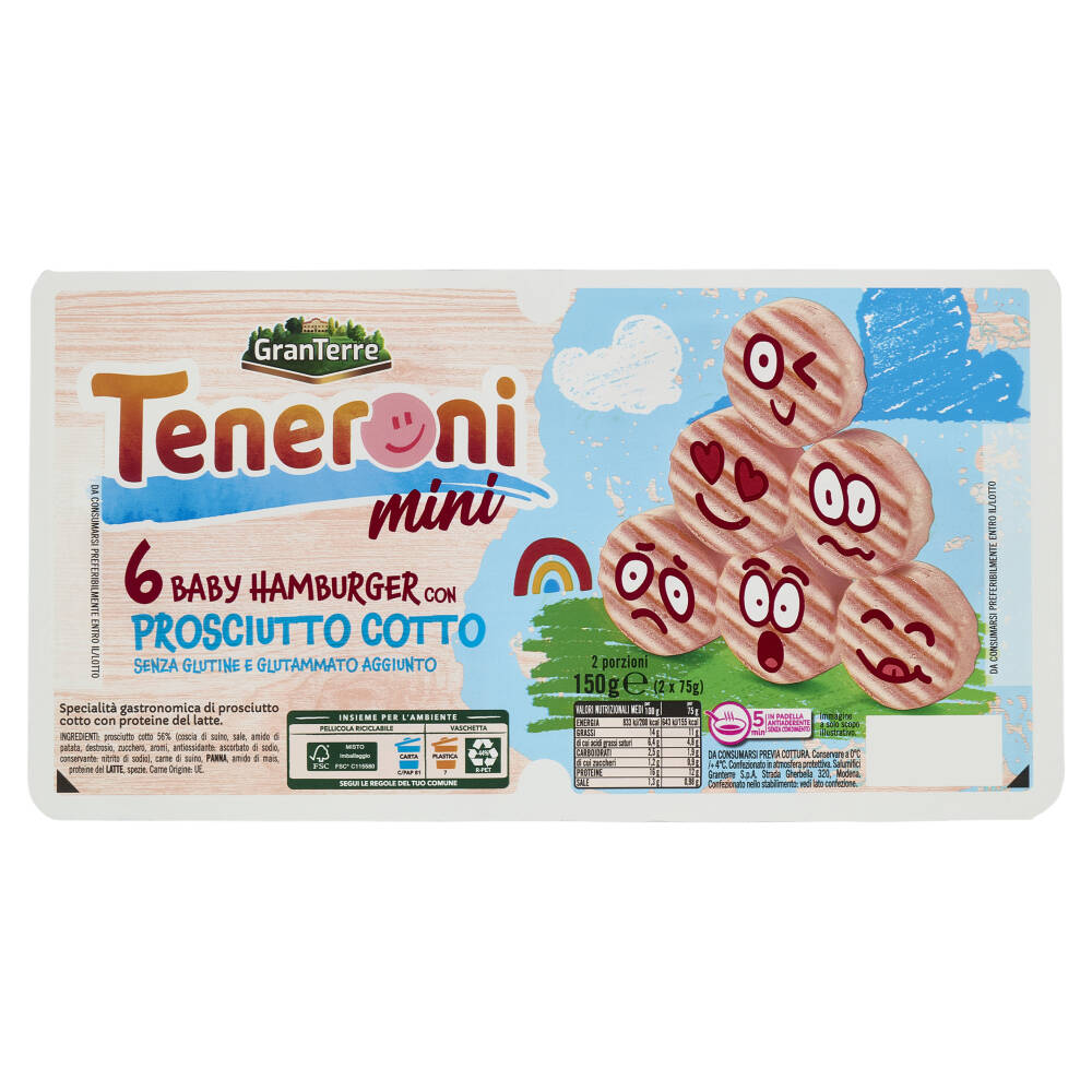 6 Baby hamburger con prosciutto cotto Senza glutine e glutammato aggiunto