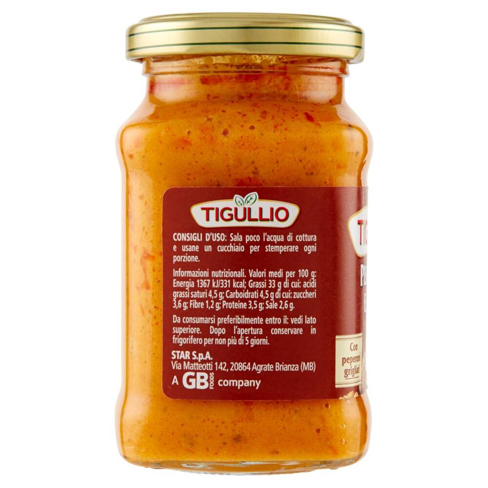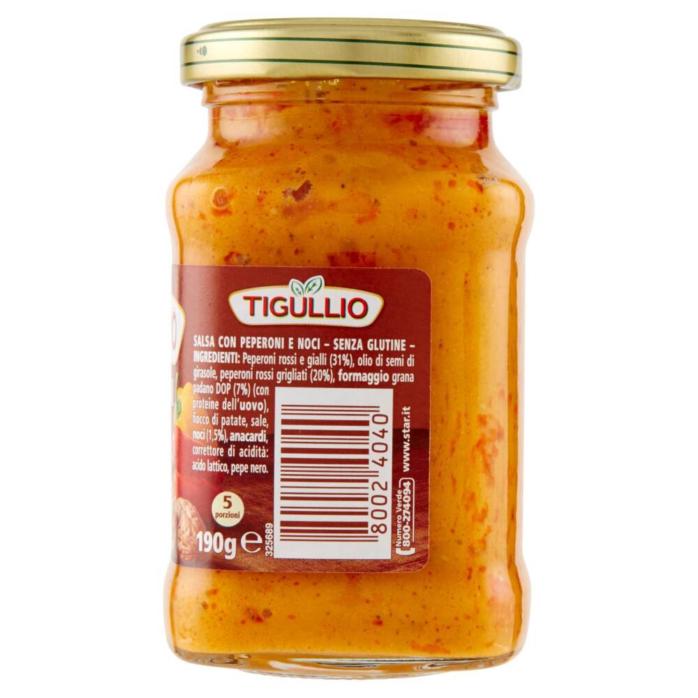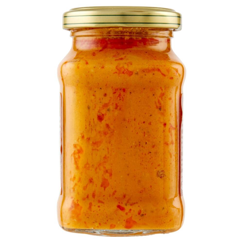 Peperoni rossi e gialli (31%) Olio di semi di girasole Peperoni rossi grigliati (20%) Formaggio grana padano DOP (7%) (con proteine dell'uovo) Fiocco di patate Sale Noci (1,5%) Anacardi Correttore di acidità: acido lattico Pepe nero