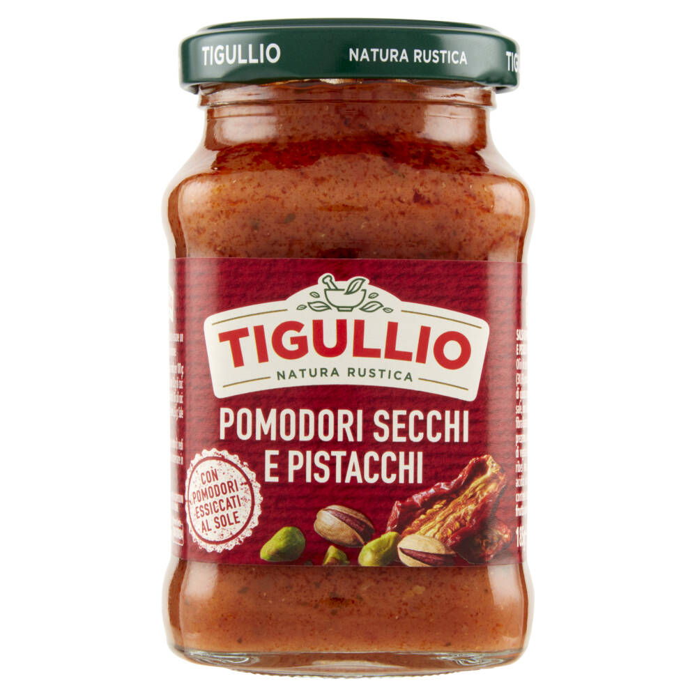 Olio di semi di girasole Polpa di pomodoro (30,6%) Pomodori seccati al sole (8,1%) Sciroppo di glucosio Pomodori semi-secchi (6,8%) Patate Sale Siero di latte in polvere Fibra di patata Pistacchi (1%) Prezzemolo Aglio Concentrato di vegetali e di frutta (carota, ribes nero) Correttore di acidità: acido citrico Può contenere tracce di altra frutta a guscio e uova