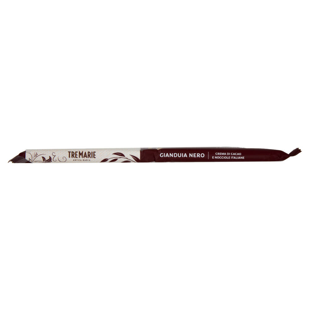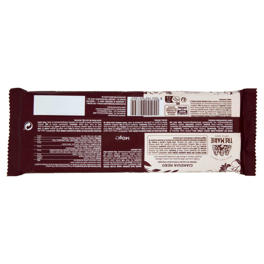 Cialde croccanti abbracciano una crema vellutata al gusto intenso e deciso del cioccolato gianduia nero.