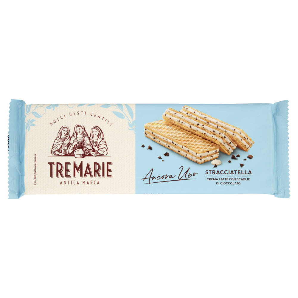Wafer farciti con crema latte e pezzi di cioccolato (crema: 85%)