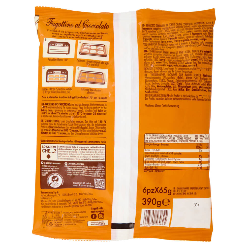 Con gocce di cioccolato fondente Con lievito madre Senza conservanti né coloranti 6 Fagottini congelati