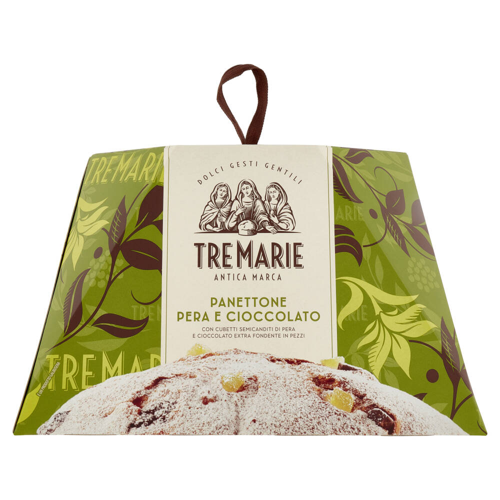 Farina di frumento Pera semicandita 16,1% (cubetti di pera, sciroppo di glucosio-fruttosio, zucchero, succo di limone concentrato, aroma naturale) Burro Zucchero Cioccolato fondente extra 6,9% (zucchero, pasta di cacao, burro di cacao, destrosio, emulsionante: lecitina di soia; aroma naturale) Lievito naturale [lievito madre (farina di frumento, acqua), lievito] Tuorlo d'uovo fresco da galline allevate a terra 6,8% Emulsionante: mono- e digliceridi degli acidi grassi Siero di latte in polvere Sale Aromi naturali Può contenere senape e frutta a guscio Zucchero a velo in bustina (3,2% sul prodotto finito). Ingredienti: zucchero, amido di frumento, aromi naturali