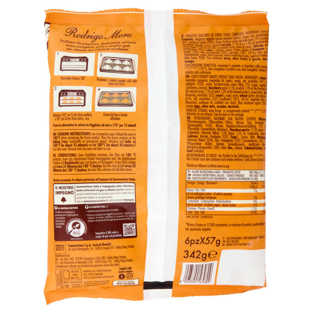 Farcitura crema nocciole-cacao 17% (zucchero, oli vegetali (girasole, cocco), pasta di nocciole 11,5% di cui 1,9% sul prodotto finito, cacao magro¹ 75% di cui 1,2% sul prodotto finito, burro di cacao¹, lattosio, aromi, emulsionante: E322 (soia))