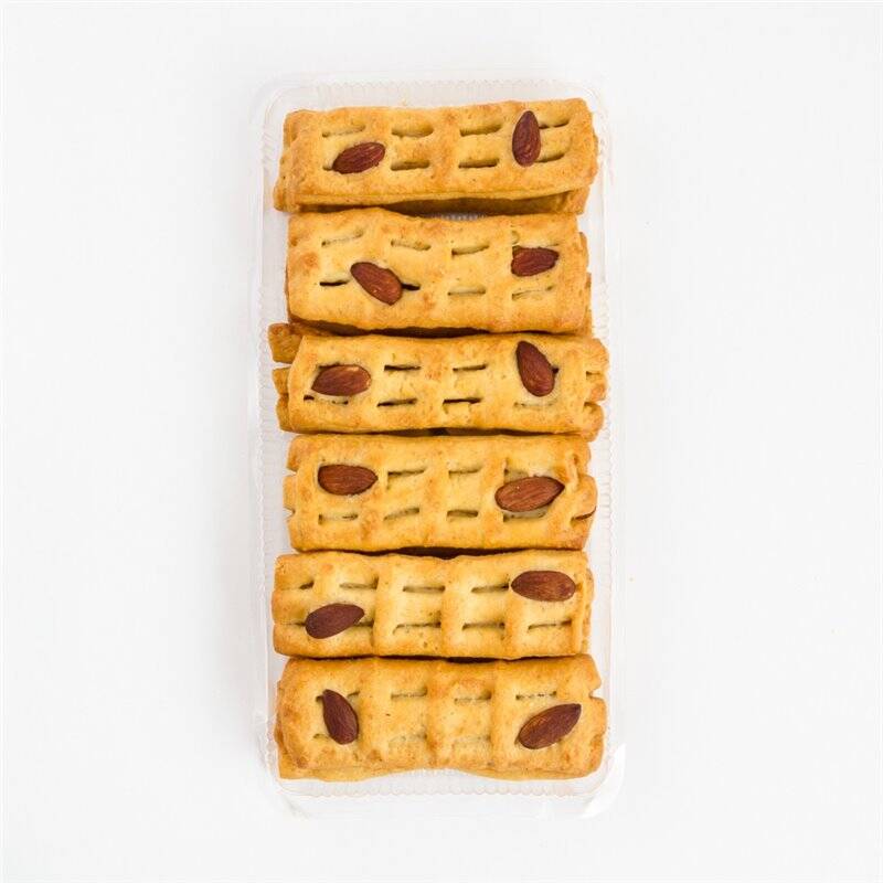 Farina 00, acqua, olio di girasole, strutto 4% (puro suino E320), MANDORLE, olio extravergine di oliva, VINO bianco, sale, lievito, MALTO. Potrebbe contenere tracce di: uova, latte, soia, sesamo, frutta a guscio.