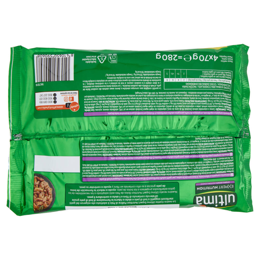 La nostra ricetta Ultima Expert Nutrition Palline di Pelo è adattata alle esigenze dei gatti sterilizzati soggetti a boli di pelo e aiuta a ridurre la formazione di boli di pelo grazie all'elevato contenuto di fibre e li aiuta a controllare il peso.