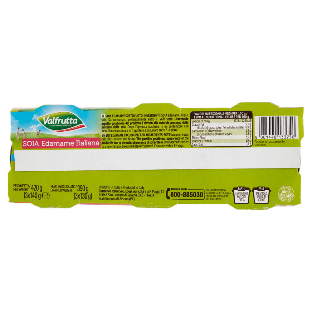 La Soia Edamame Valfrutta è coltivata nelle regioni dove le condizioni climatiche ed ambientali sono ottimali, raccolta e lavorata nel più breve tempo possibile.