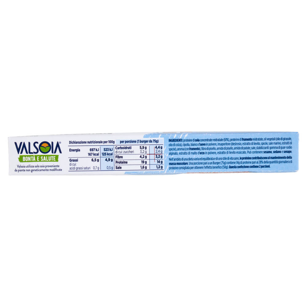 | Dichiarazione nutrizionale per 100g | per porzione (1 burger da 75g) | |