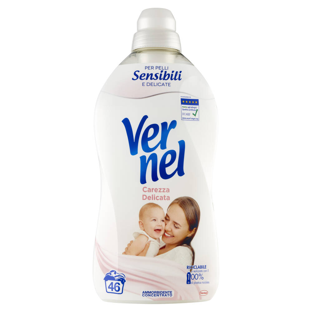Prenditi cura di te stesso e della tua famiglia con un bucato meravigliosamente morbido grazie alla delicatezza ed al profumo ipoallergenico di Vernel Carezza Delicata. Indicato per pelli particolarmente sensibili.