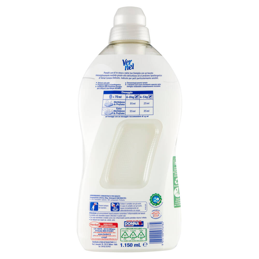 Per Pelli Sensibili e Delicate Riciclabile e realizzato con il 100% di plastica riciclata 46 Lavaggi Ammorbidente concentrato