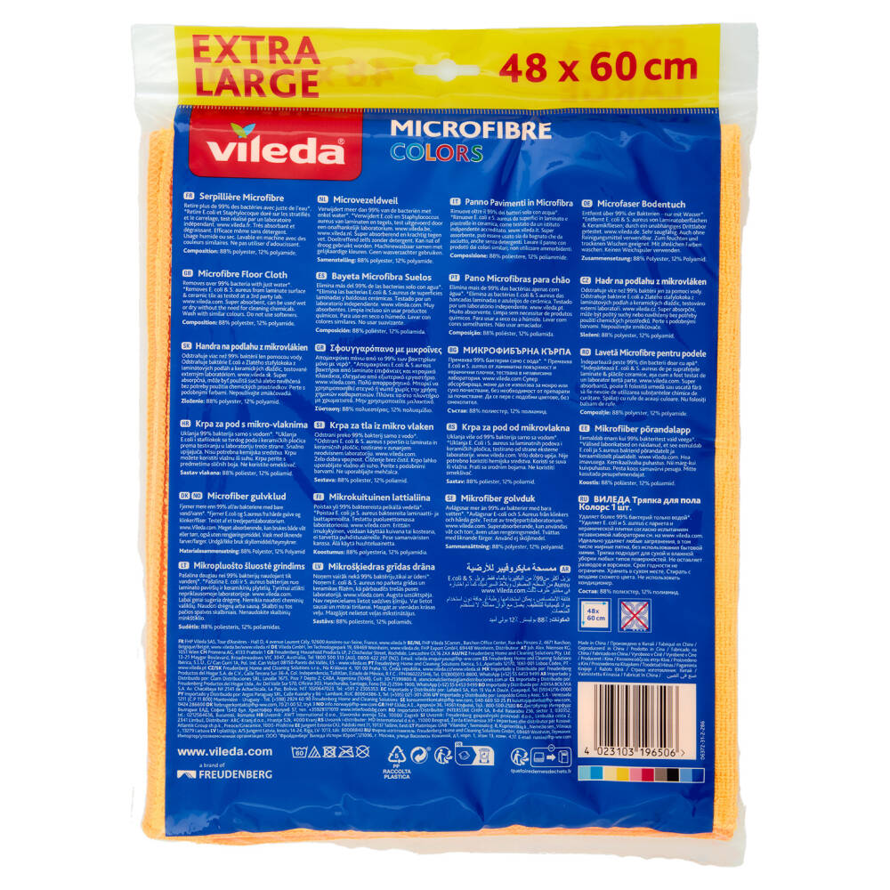 1x In lavatrice 60° Removes over 99% bacteria with just water* *Removes E. coli & S. aureus from laminate surface and ceramic tile as tested at a 3rd party lab. www.vileda.com