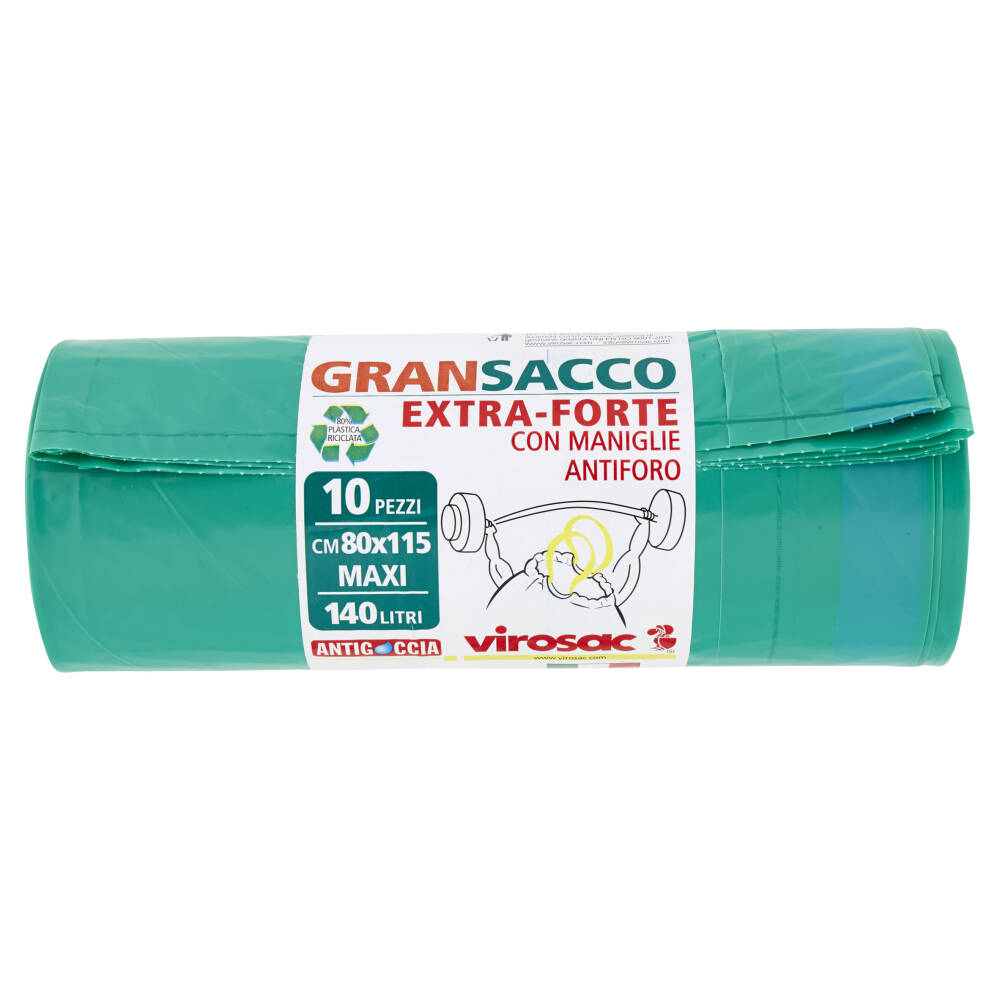 virosac Gransacco Extra-Forte con Maniglie Antiforo Cm 80x115 Maxi 140 Litri 10 pz