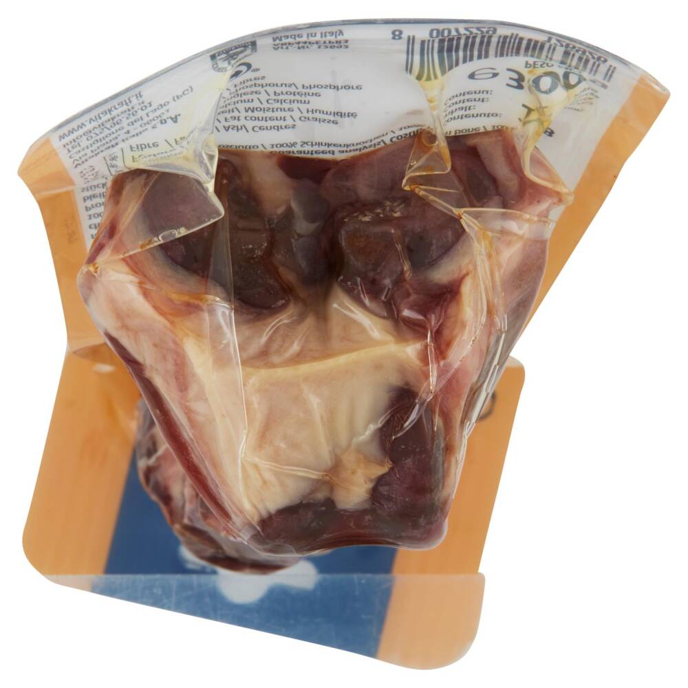 Un prodotto 100% italiano, totalmente naturale, senza additivi e ricco di calcio. Confezionato sottovuoto per mantenere la freschezza e profumo. Con pezzetti di carne attaccati all'osso. Una delizia per tutti i cani.