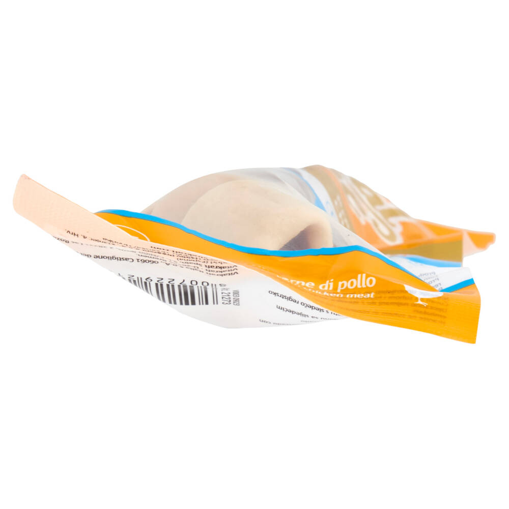 Speciale formulazione 2 in 1: consistenza che rafforza denti e muscoli masticatori e contenuto di pollo che rende il prodotto molto più appetibile dei normali masticativi. Contiene proteine animali.