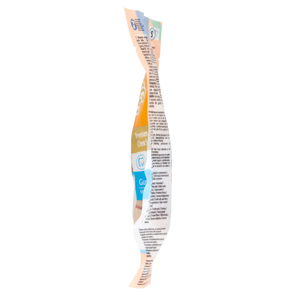 Speciale formulazione 2 in 1: consistenza che rafforza denti e muscoli masticatori e contenuto di pollo che rende il prodotto molto più appetibile dei normali masticativi. Contiene proteine animali.