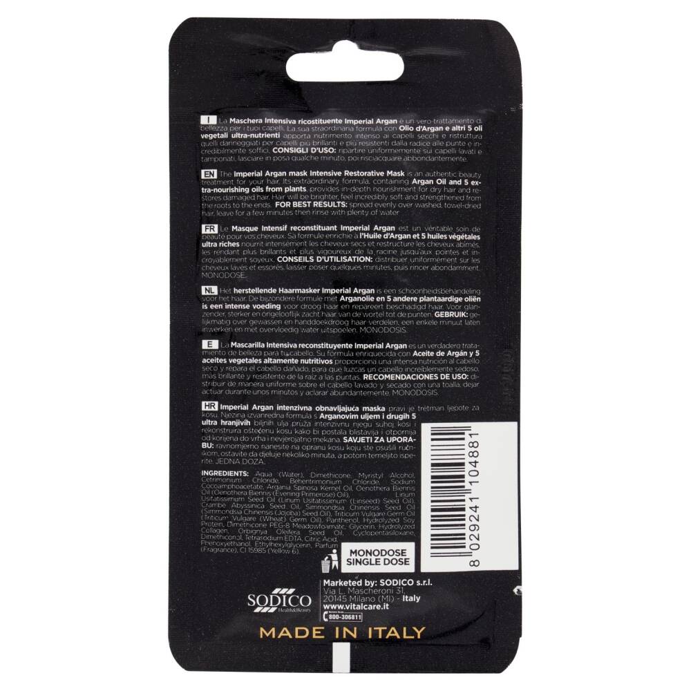 La Maschera Intensiva ricostituente Imperial Argan è un vero trattamento di bellezza per i tuoi capelli. La sua straordinaria formula con Olio d'Argan e altri 5 oli vegetali ultra-nutrienti apporta nutrimento intenso ai capelli secchi e ristruttura quelli danneggiati per capelli più brillanti e più resistenti dalla radice alle punte e incredibilmente soffici.