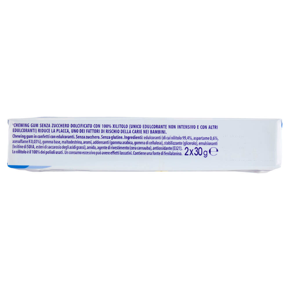 Riduce la placca* 100% Xilitolo - Unico non intensivo tra gli edulcoranti presenti Senza zucchero 2 Astucci *Chewing gum senza zucchero dolcificato con 100% xilitolo (unico edulcorante non intensivo e con altri edulcoranti) riduce la placca, uno dei fattori di rischio della carie nei bambini