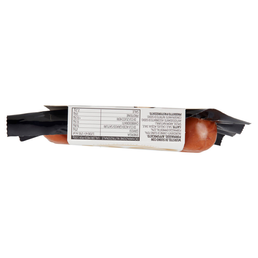Ricetta originale tedesca Wurstel di suino Con Emmental di Baviera Prodotto in Italia con carne origine UE