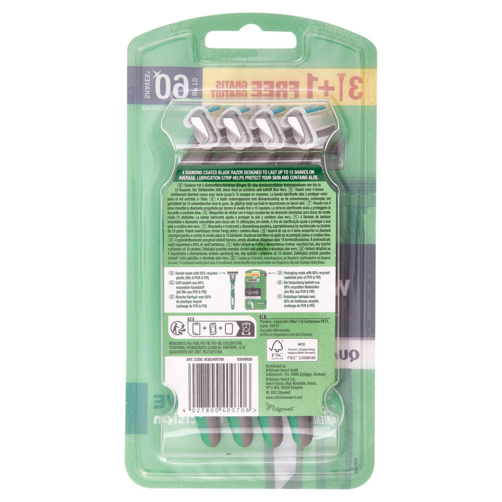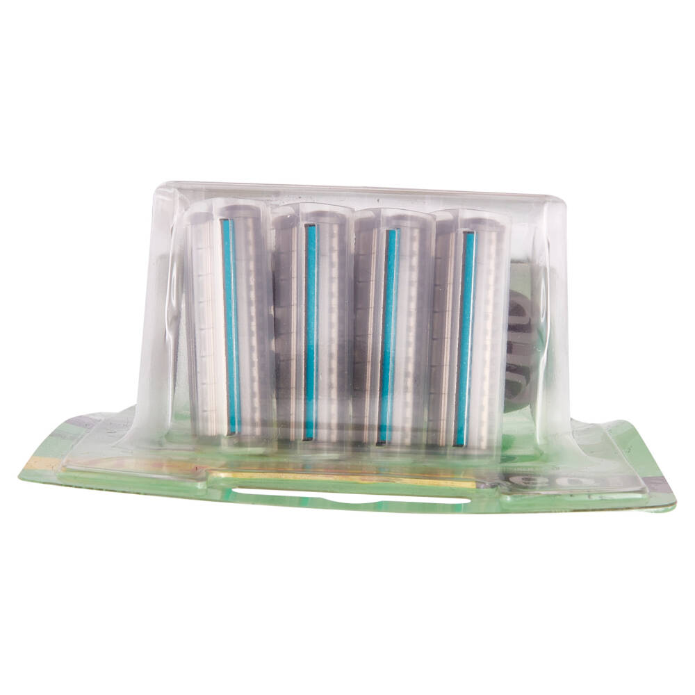 Up to 60 shaves* Titanium & diamond coated blades 4 Lame Aloe Packaging made with 85% recycled materials (mix of PCR/PIR) Precision *Avg. number of shaves per pack
