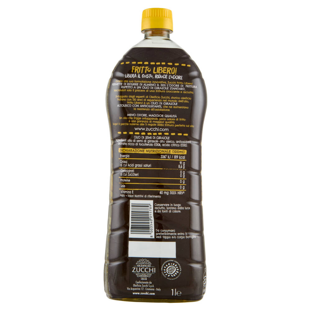 Sviluppato dagli esperti di Oleificio Zucchi, storico oleificio italiano con 210 anni di esperienza nel mondo dell'olio, Fritto Libero! è un olio di girasole altoleico con antiossidanti, che ne aumentano la resistenza all'ossidazione.